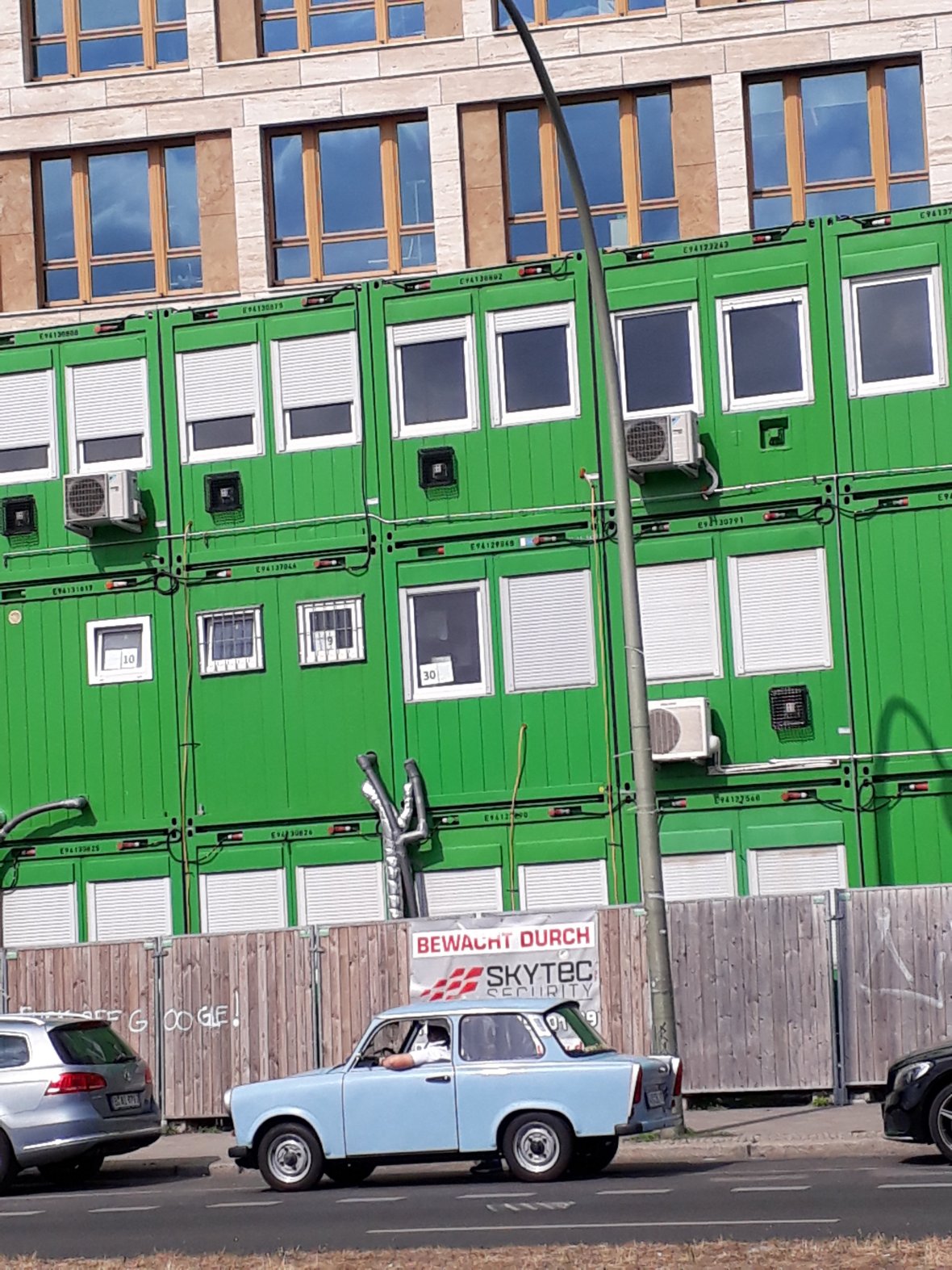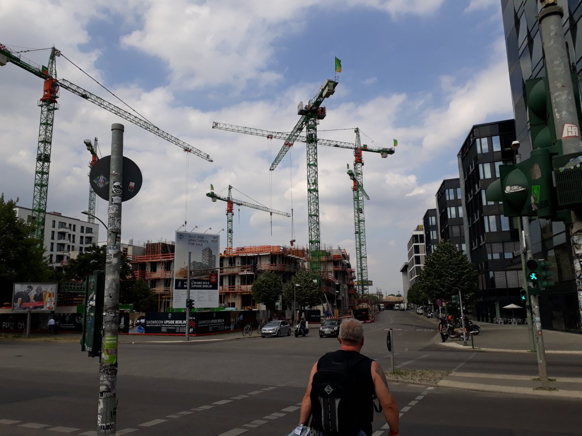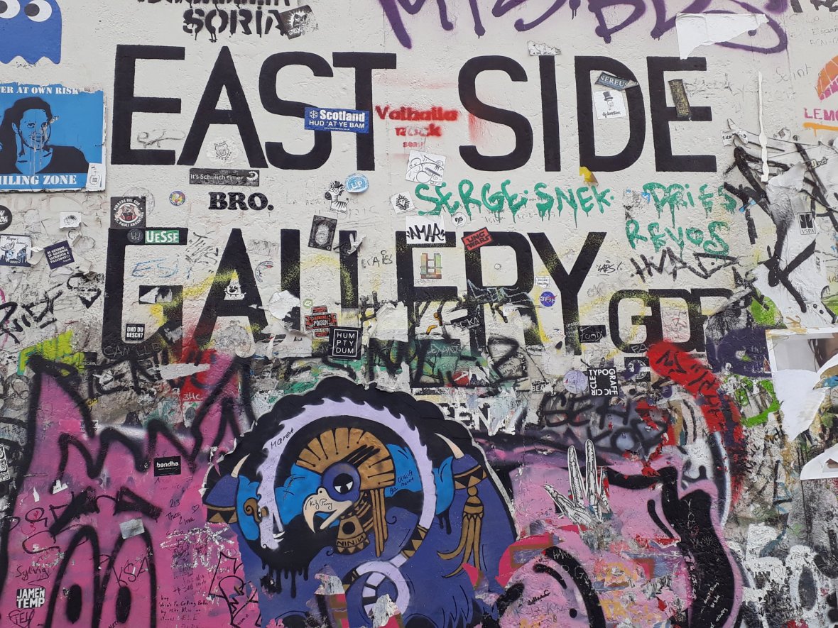 Um olhar para o lado oposto ao muro, East Side. Muitos edifícios, poucos são antigos. Quase tudo coberto por andaimes, em reforma. Parece que esse lado tem um querer que é o de esconder debaixo do cimento as vergonhas.