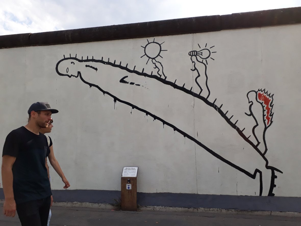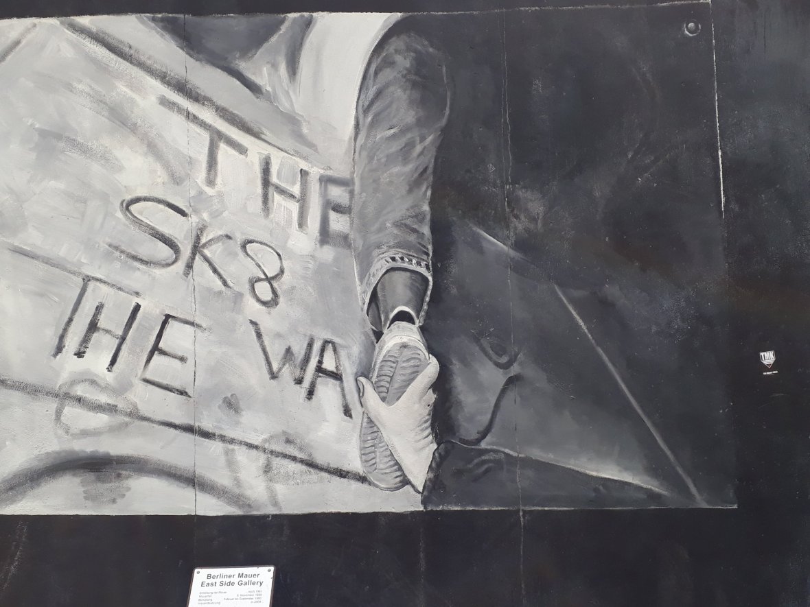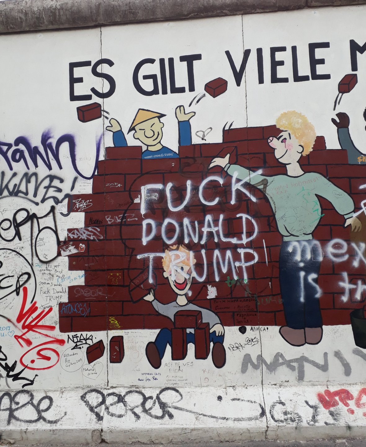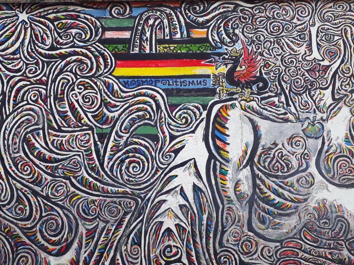 Uma emoção, uma surpresa. Quando cheguei ali por acaso comecei a trocar mensagem com um amigo alemão. Ele disse que a mãe tinha pintado um painel no muro. Pedi para ele mandar uma foto ou descrever. Ele não tinha foto e era difícil descrever o desenho, mas enviou a frase em alemão, a mesma que colocou na lápide da mãe. Enquqnto percorria o muro procurava identificar as palavras. Achei! Mandei a foto. Foi muito especial. Emocionante dividir isso com ele. Não vou identificar o painel, é muito pessoal. Não é esse aí debaixo.