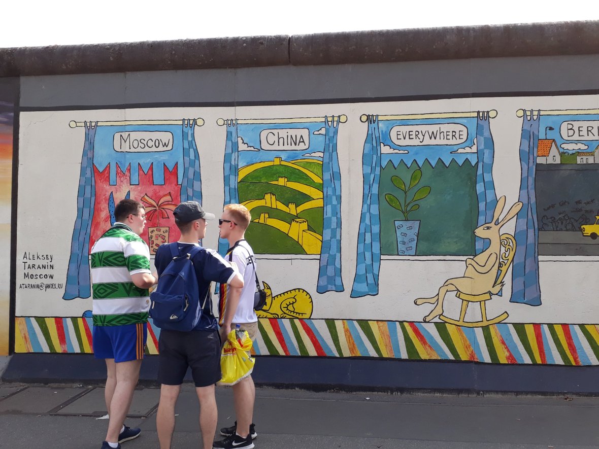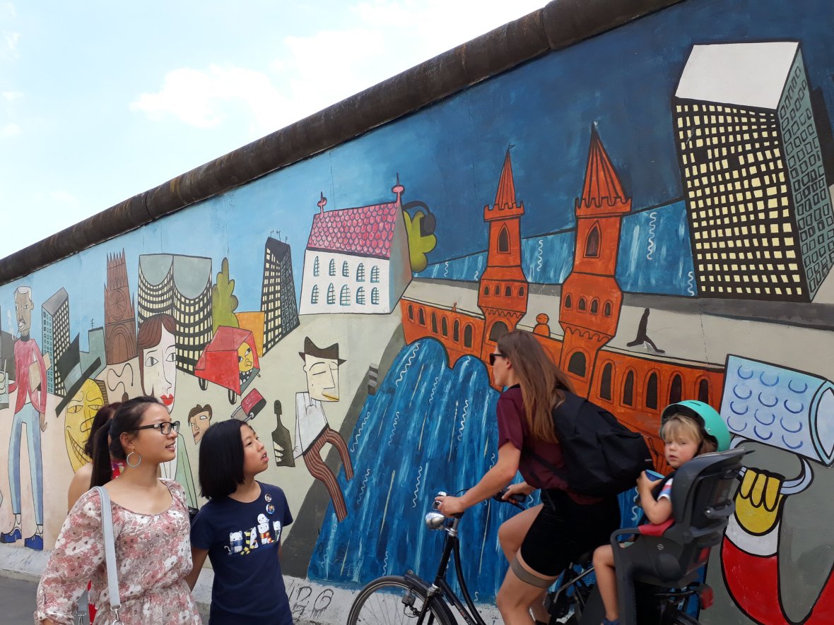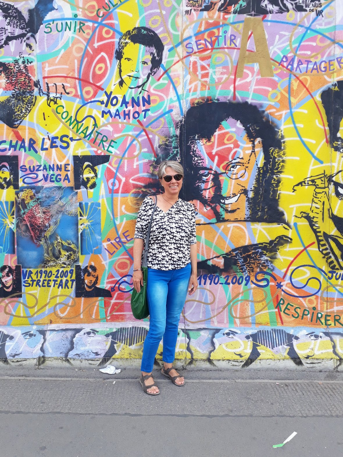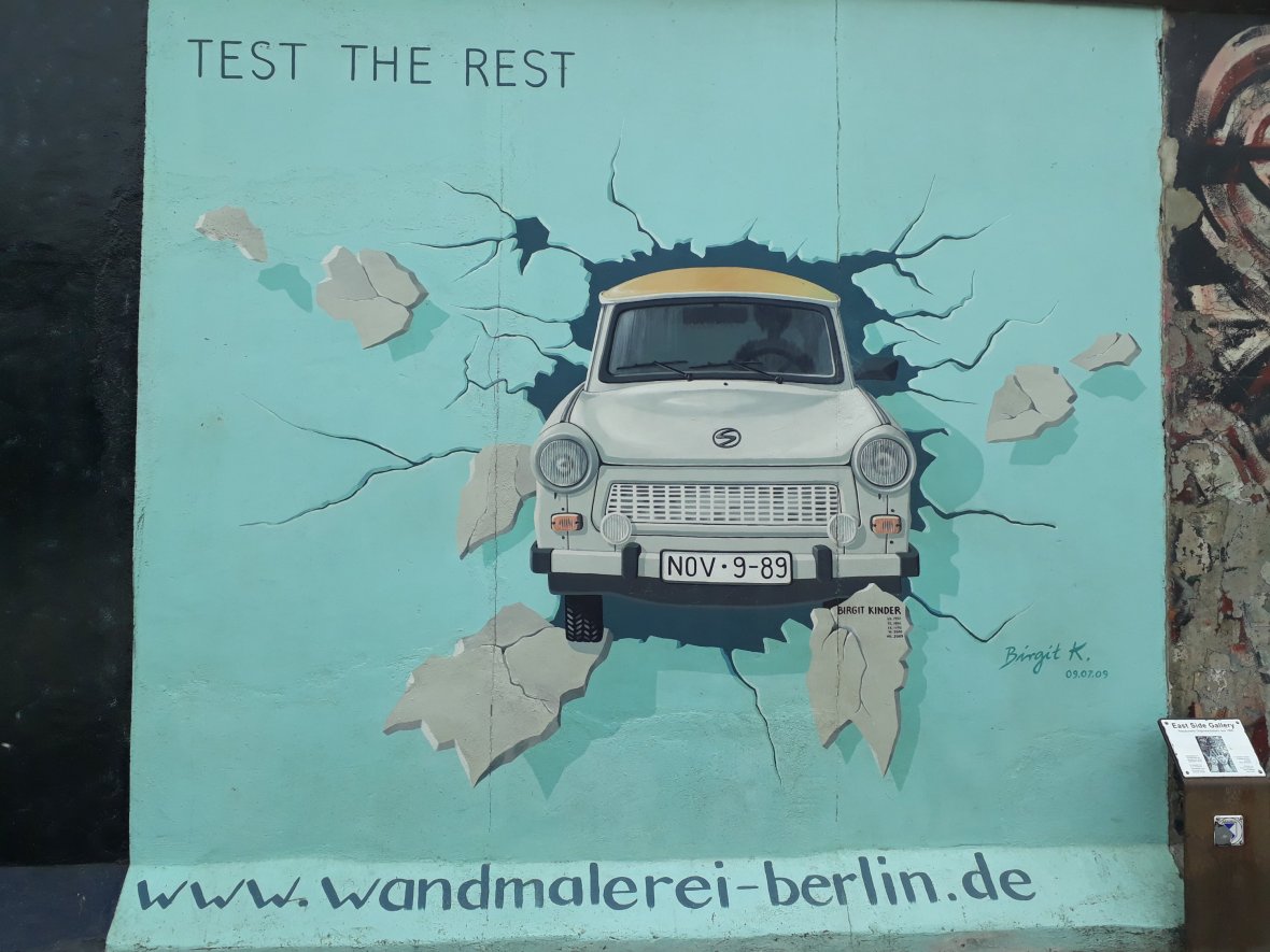 Uma emoção, uma surpresa. Quando cheguei ali por acaso comecei a trocar mensagem com um amigo alemão. Ele disse que a mãe tinha pintado um painel no muro. Pedi para ele mandar uma foto ou descrever. Ele não tinha foto e era difícil descrever o desenho, mas enviou a frase em alemão, a mesma que colocou na lápide da mãe. Enquqnto percorria o muro procurava identificar as palavras. Achei! Mandei a foto. Foi muito especial. Emocionante dividir isso com ele. Não vou identificar o painel, é muito pessoal. Não é esse aí debaixo.