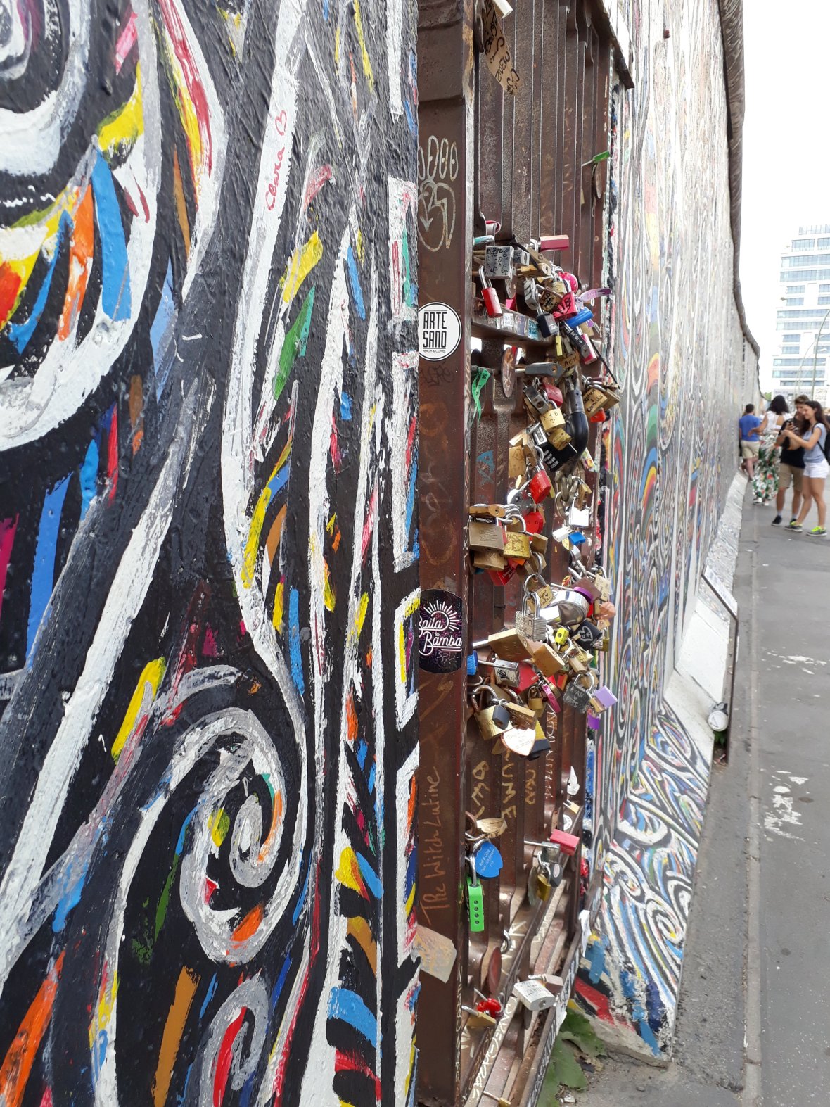 Hoje o muro. Continuamos a construí-los. A estupidez humana tem pouco limite, já o limite da memória é evidente. O Muro de Berlim tem um fim, afinal. Ele fala de uma história que não deve ser repetida mas, parece que boa parte das pessoas desse mundo tem problema de surdez.