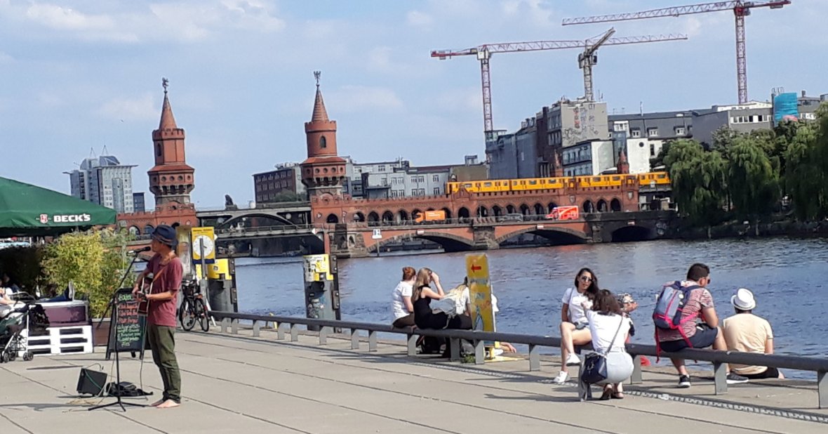 Hora de descanso antes de voltar para casa. Um cantor afinado descolado do muro, mas ali pertinho, ao lado do canal. Gente de várias partes do mundo misturadas para assistir. Assim é que deve ser. Paz!